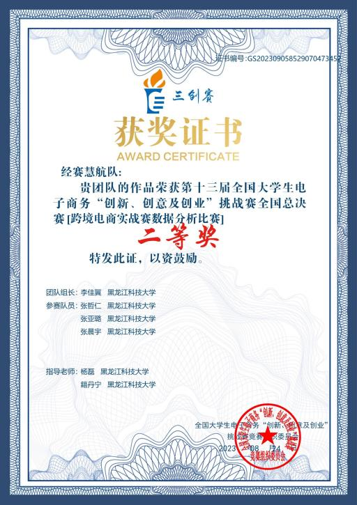国赛二等奖1名(指导教师:经济学院-杨磊、籍丹宁)