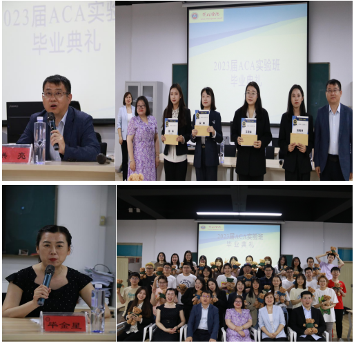 会上,洪亮经理发表讲话,对2023届ACA实验班取得的成绩表示肯定,对毕业班员工提出殷切的期望,洪经理希望同学们不要轻易丢弃求知的欲望,不要迷失自我,要学会担当和包容。班主任毕老师也向同学们送上祝福,祝愿同学们前程似锦!未来可期!IAS张涛总监对ACA实验班的办学质量和成绩给予了充分的肯定,并宣读了优秀毕业生及优秀教师表彰决定。ACA 实验班班长谢丛怿及优秀毕业生代表吴楠分别进行了中英文发言,对辛勤培养的母校及老师表示感谢,也对学弟学妹提出了希望。