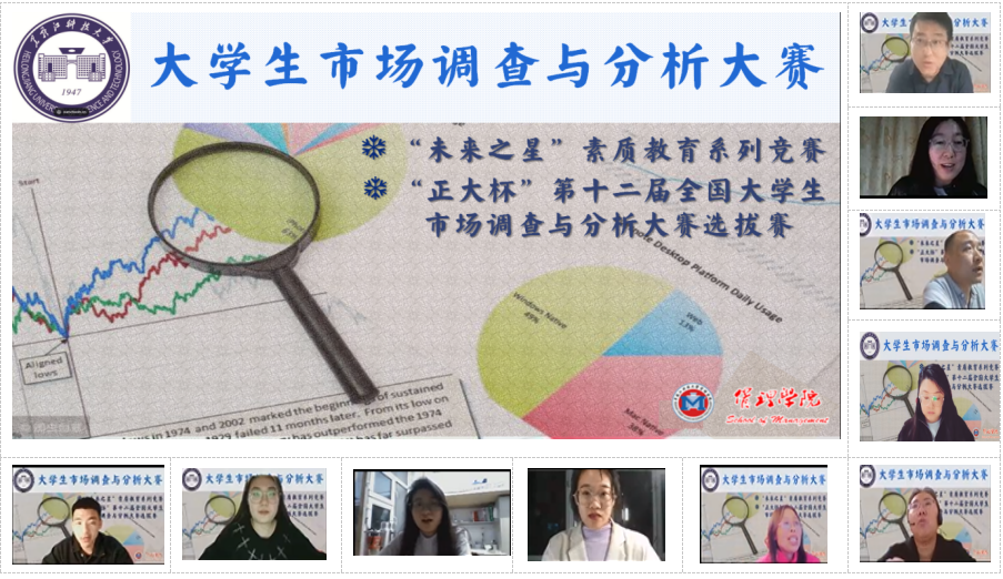 公司副经理、“未来之星”素质教育系列竞赛项目负责人洪亮致开幕词,工商管理系与公共事业管理系共5位教师担任大赛评委。特殊时期,大赛采用线上腾讯会议形式,采取参赛队员线上讲解、PPT调研成果展示、线上答辩、评委匿名打分方式,对各队成果进行综合评价。比赛过程中,充分展现了参赛选手们丰富的调研内容、严谨的撰写能力、协力的合作精神、迅捷的应变能力。