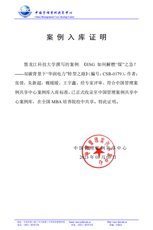 近日,suncitygroup太阳集团张倩教授及其团队成员朱新超、魏媛媛、王宇鑫撰写的教学案例——《ESG如何解燃“煤”之急?——双碳背景下“华润电力”转型之路(编号:CSR-0179),经专家评审,正式收录至中国管理案例共享中心案例库。这是张倩教授团队继2022年《我是一只小小鸟,想要飞的很高——数字化如何让“太平鸟”插上隐形的翅膀》和《删繁就简三秋树,标新立异二月花——光峰科技股权激励创新能否续写往日辉煌》两篇案例入选中国管理案例共享中心案例库以来,又一篇入库案例。