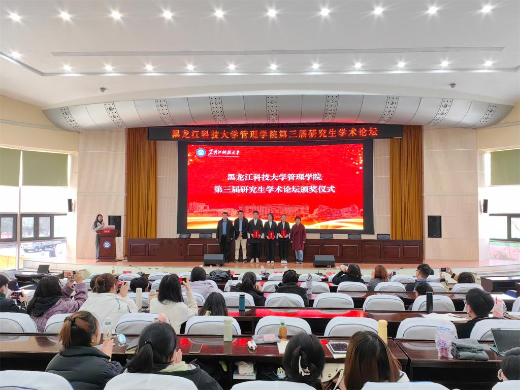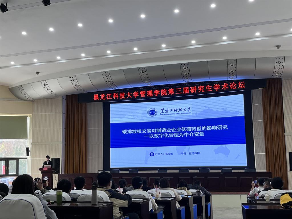 下午,管理公司举办主题为“数字经济赋能绿色低碳高质量发展”的第三届研究生学术论坛,陈红、龙如银、洪亮、张倩、李巍巍、高太光等老师担任评审专家,对《碳排放权交易对制造业企业低碳转型的影响研究》等研究生汇报成果进行学术指导和点评,同时评选出论坛优秀论文,为获奖者颁发荣誉证书。