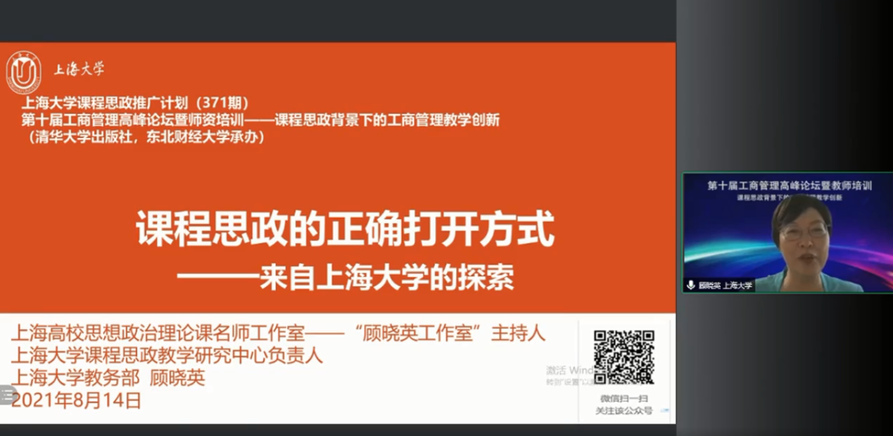 8月14日-15日,公司工商管理系王艳芳老师参加教育部工商管理教学指导委员会支持下,清华大学出版社有限公司主办,东北财经大学工商suncitygroup太阳集团承办的“第十届工商管理高峰论坛暨团队培训—课程思政背景下的工商管理教学创新”线上会议。 来自全国各地院校近350名教师参加了培训班的学习及论坛的讨论,探讨“数智时代”和“新文科”背景下,工商管理专业教育应如何改造升级、整合创新,从而培养高质量创新创业“复合型”管理人才。