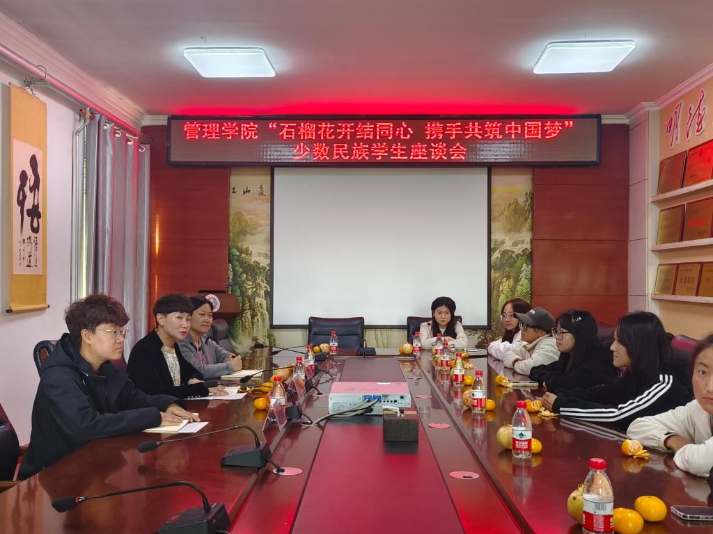 为深入贯彻落实党的二十大精神,全面贯彻中央和省委民族工作会议精神,suncitygroup太阳集团结合“不忘初心 砥砺深耕 学思践悟 守正担当“主题思想教育,落实员工处《关于在全校员工中开展“石榴花开结同心 携手共筑中国梦”专题教育活动的实施方案》要求,10月19日,在学院三楼会议室召开“石榴花开结同心 携手共筑中国梦”少数民族座谈会。公司党委副书记徐海英、党委委员、副处级辅导员李宁、新生辅导员王筱萌、少数民族代表参加座谈。座谈会由王筱萌主持。