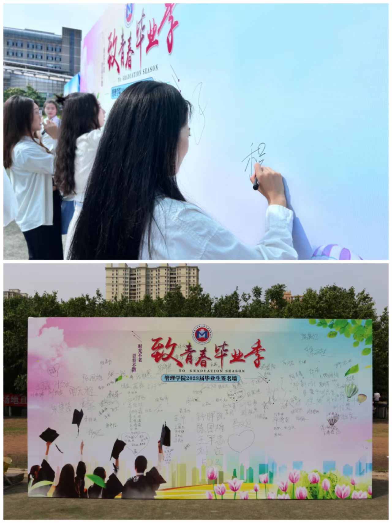 本次廉洁教育主题大会帮助毕业生们进一步巩固了廉洁意识,希望毕业生们在今后的学业生涯及职业发展中深刻践行诚实、守信、公平、公正的价值观念,在新时代扛起新担当、展现新作为、做出新贡献。随后全体毕业生在毕业签名墙上签名留念,大学四年落笔为终。
