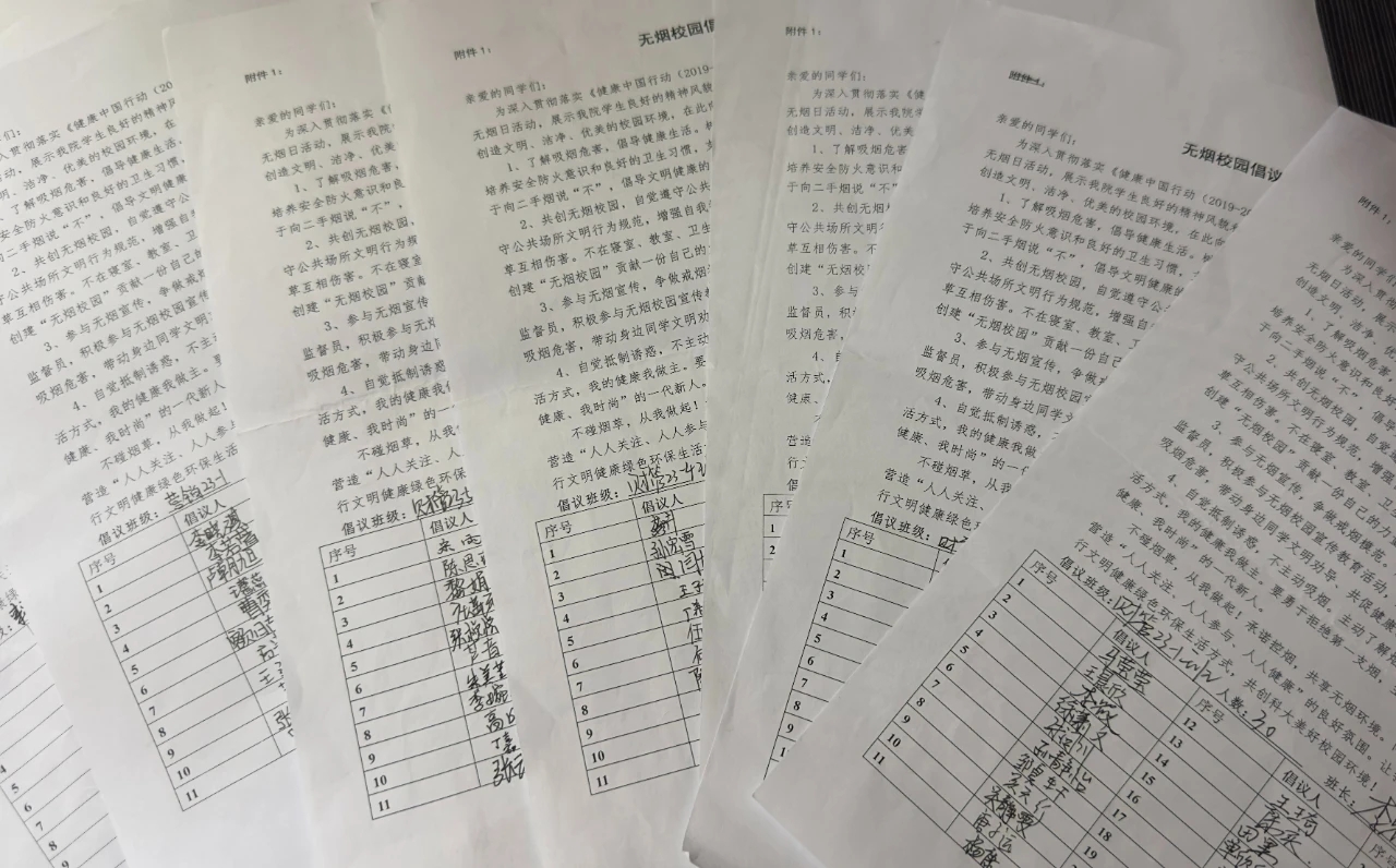 suncitygroup太阳集团制定“保护青少年,免受烟草危害”主题班会方案,组织开展80多个班级共计2000余人举行“免受烟草危害”主题班会并签署“无烟校园倡议书”。通过在班会上的宣传引导,同学们纷纷在倡议书上签下自己的名字,表达了对禁烟倡议的支持和决心。而后,suncitygroup太阳集团在第一、第十三、第十六、第十七、第十九员工公寓楼下举行“无烟校园,从你我开始”签字仪式,引导有控烟意愿的人群科学控烟,同学们热情高涨,积极参加签字仪式。最后,同学们表示将积极践行建设无烟校园的倡议,共同为创建无烟校园贡献力量。
