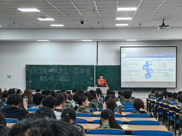 为破解适应难题,徐海英分享了四项实用策略:以“小目标拆解法”打破迷茫,通过每日、每周、每月的具体目标建立行动节奏;用“情绪调节三步法”引导新生识别情绪、查找根源、合理释放;借“渐进式社交”建议新生从宿舍、课堂、兴趣切入,逐步建立新的人际关系;以“成长型思维”鼓励新生多与自己对比,将挫折视为成长机会。 此外,她还详细介绍了学院搭建的“三级支持网络”:身边有辅导员、同学提供即时帮助,学院二级心理辅导站及学校心理健康教育中心提供专业支持,家庭则是永远的心灵港湾,同时提醒新生“求助是勇敢而非软弱”。