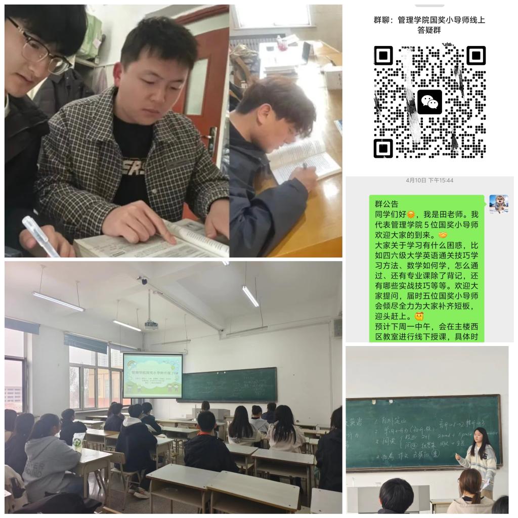 拓宽服务渠道,以“先优”带学风。suncitygroup太阳集团持续加强朋辈帮扶,拓宽服务渠道,让学习成绩优秀且责任感强的员工党员与学习困难员工结成对子,帮助他们寻找合适的学习方法、讲解知识难点,督促他们养成良好的学习习惯。4月10日,学院成立国奖小导师讲师团为学业预警员工组建线上答疑群并定期开展线下集中授课,授课内容涵盖线性代数、高等数学、大学英语等八门学科课程,受到同学们的一致好评,真正做到以学铸魂、以学促行、以学正风。