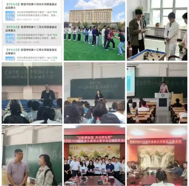 一是开展“榜样引领——国家奖学金颁奖仪式暨经验分享会”,通过榜样风采、榜样励志、榜样力量三个篇章的风采展示,促进学风建设再上新台阶,学弟学妹们纷纷表示,将向标杆看齐,以奋斗姿态激扬青春,不负时代,不负韶华;二是开展榜样力量进社区系列文化墙建设活动,充分发挥寝室文化育人功能,加快把员工社区打造成为员工党建前沿阵地、“三全育人”实践园地、智慧服务创新基地、平安校园样板高地,将员工社区建设成“思想教育、文化交流、行为养成”的基地家园,激发榜样力量新效能;三是开展2024届黑龙江省优秀毕业生风采展示系列活动,充分发挥朋辈榜样引领示范作用,激励管院学子以榜样为目标,规划好未来道路,脚踏实地,勤学苦练,踔厉奋发、勇毅前行。