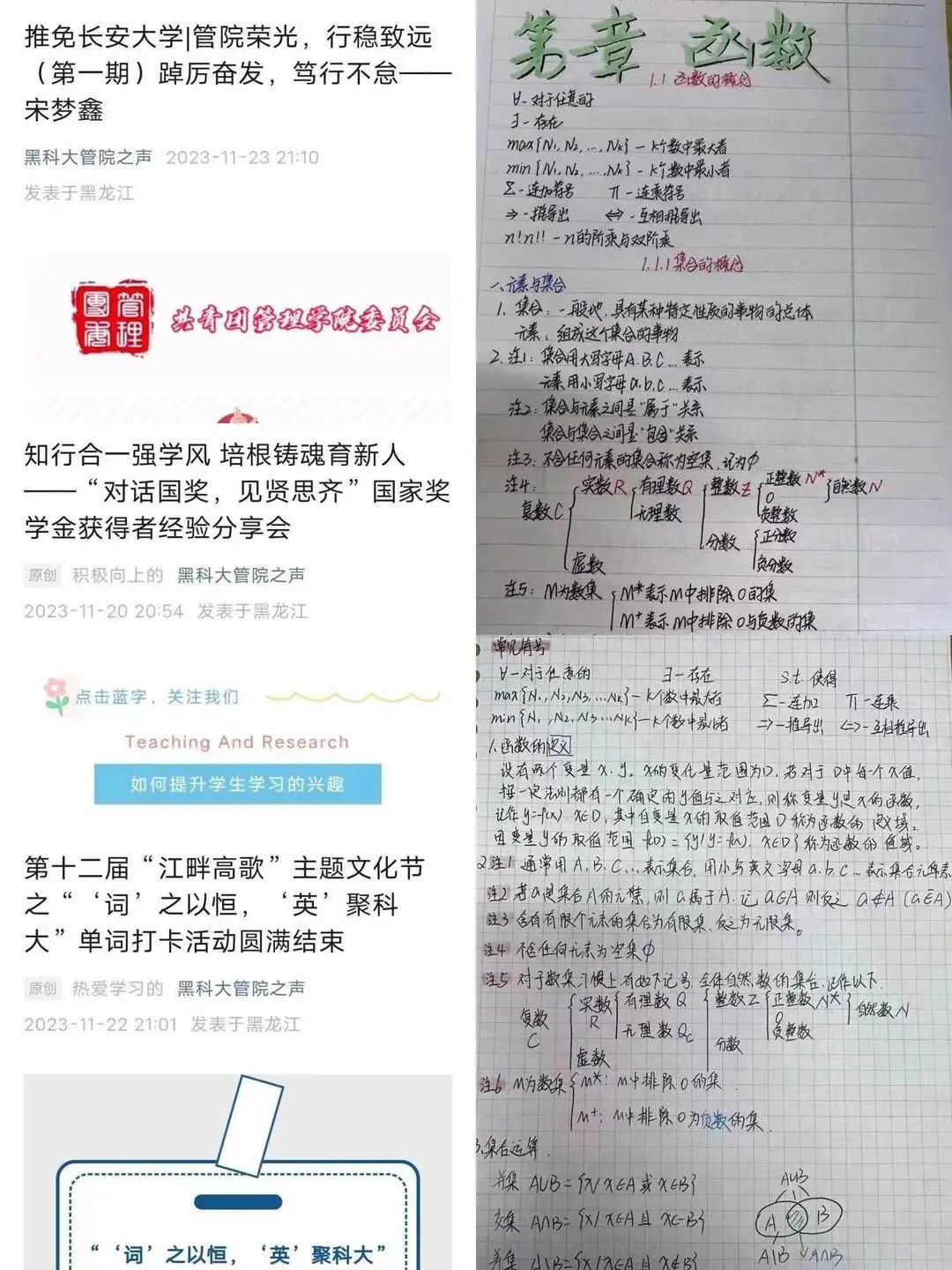 公司充分挖掘优秀学子在学风建设中的榜样示范作用,组织开展“对话国奖 见贤思齐”国家奖学金经验分享会、“管院荣光,行稳致远”推免事迹分享活动、“四六级经验共分享,引领学习新风尚”学习经验分享会、心中有“数”,厚“记”薄发——最美数学笔记评选活动、“相约管理,牵手二三”帮扶活动、“词”之以恒,“英”聚科大单词打卡等活动,发挥头雁作用,形成雁阵效应,为员工成长成才赋能添力,推动学风建设走实走深。