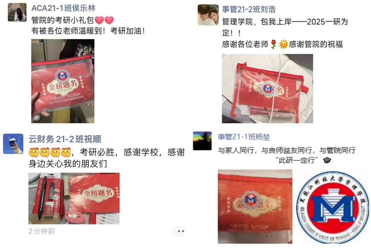 活动中,老师们逐一走访寝室慰问考研学子,为在书海题山中奋力拼搏的管院学子们带来了贴心的定制文具礼包,以表达对学子们的亲切关怀与真挚祝愿。