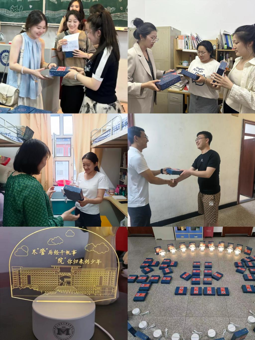 会后,学院领导为参加座谈的毕业生代表发放纪念品,毕业年级辅导员通过召开年级大会、深入员工公寓走访慰问发放了专属定制毕业纪念品,以科大主楼为背景,群云为依托,像一盏明灯照亮前行之路,指引着学院全体毕业生的美好未来,并寄语尽“管”历经千帆事,“院”你归来仍少年,祝愿全体毕业生在新的人生道路上乘风破浪、展翅高飞,在实现中国梦的生动实践中写下青春注脚,在矢志奋斗中谱写时代之歌。