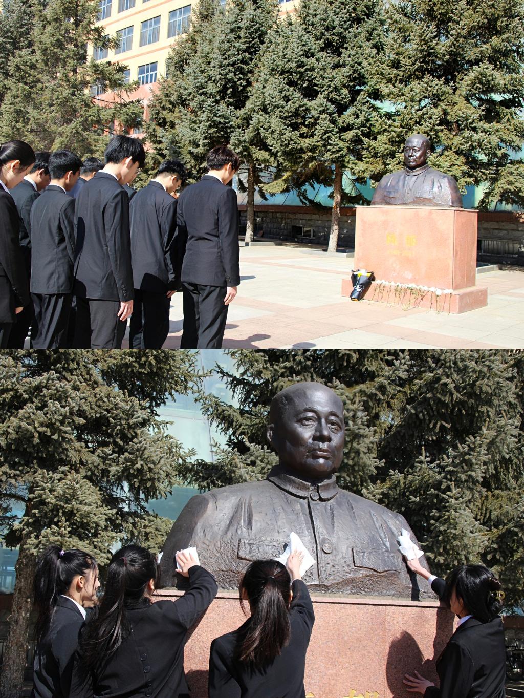 活动出发前,suncitygroup太阳集团团学骨干代表共同前往集团陈郁塑像前进行文明祭扫活动,缅怀公司奠基人、名誉董事长陈郁同志,青年员工们对陈郁塑像三鞠躬并清扫擦拭塑像,在仪式感召中进一步赓续精神血脉,传承革命精神,感悟老一辈革命家的初心使命。