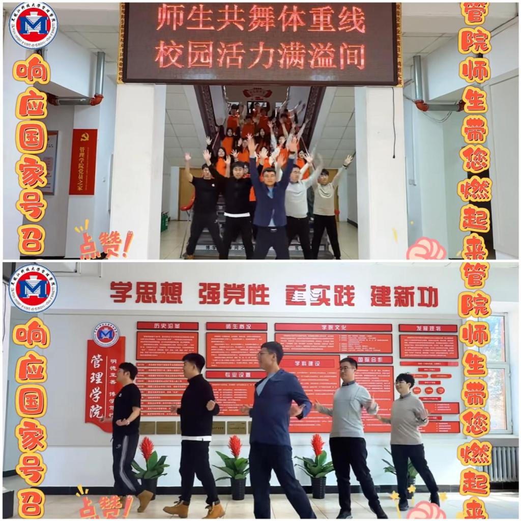 师生共燃健康魂,云端接力传强音。倾情制作“师生共舞体重线,校园活动满溢间”运动视频,结合体转、跳跃、扩胸等动作编排,师生同跳定制版《卡路里》燃脂舞。律动视频引爆云端互动热潮,带动师生解锁“碎片时间强体魄”的健康新姿势,以青春跃动之姿响应“体重管理年”行动号召,让操场奔跑声、云端加油声共同奏响校园健康协奏曲。