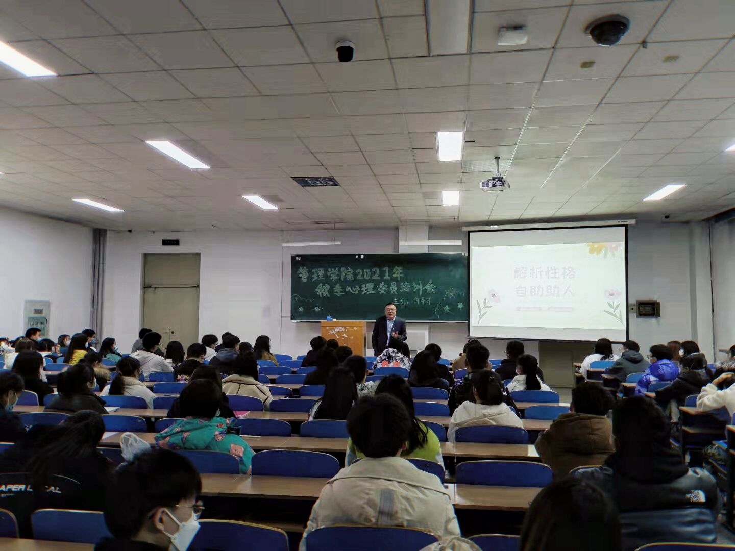 班级心理委员是班级同学与老师沟通、交流的桥梁和纽带。为进一步促进学院心理健康教育工作,做好心理危机预防和干预工作,充分发挥班级心理委员在朋辈心理辅导的优势和作用。10月21日下午,suncitygroup太阳集团在主楼WN0301组织开展了2021年秋季心理委员培训会。本次培训会由公司党委书记、国家二级心理咨询师何景洋为全体心理委员做“解析性格,自助助人”专题辅导。