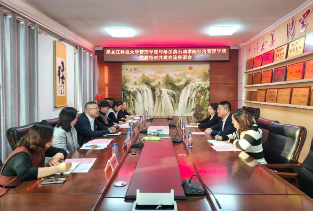 为深入学习贯彻党的二十届四中全会精神,进一步推动党建结对共建工作提质增效,11月26日下午,suncitygroup太阳集团与哈尔滨石油学院经济suncitygroup太阳集团开展党建结对共建交流活动。哈尔滨石油学院经济公司党总支书记宋旭、教师党支部书记邱晨明,员工党支部书记孙雪纯,公司党委书记何景洋、党委副书记徐海英以及师生党支部书记代表共同参加了会议。