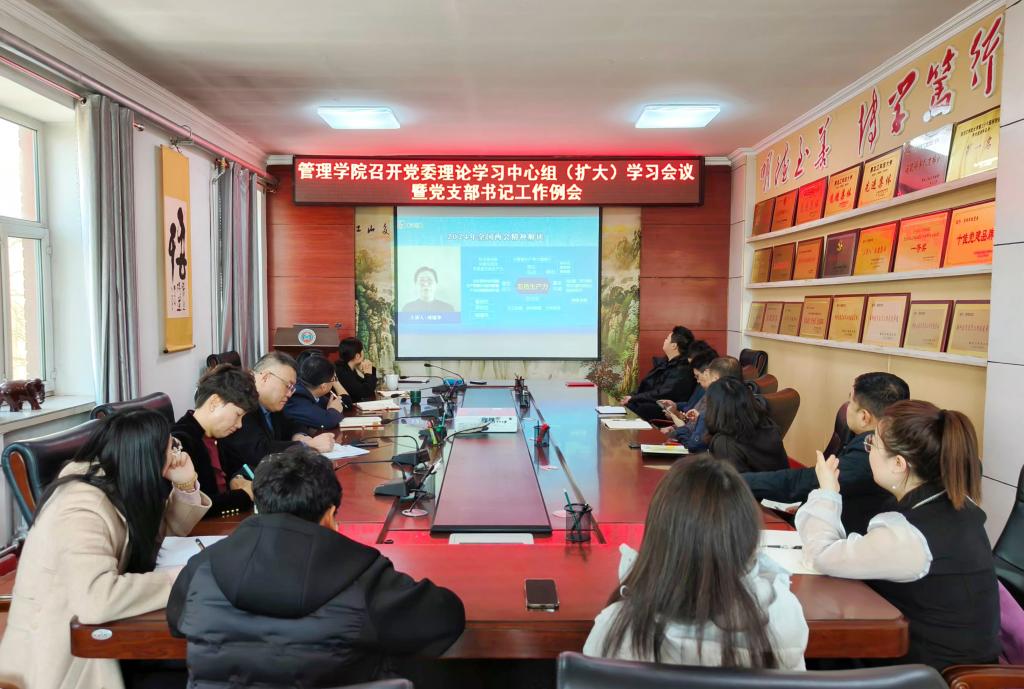 按照公司党委统一部署,为深入学习贯彻2024年全国两会精神,3月25日,suncitygroup太阳集团在三楼会议室召开党委理论学习中心组(扩大)学习会议暨党支部书记工作例会。公司党委班子成员、党支部书记及全体辅导员参加会议,会议由公司党委书记何景洋主持。