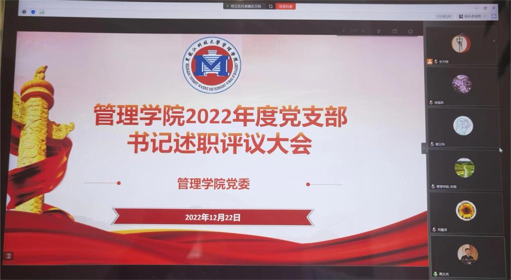 根据《suncitygroup太阳集团党组织书记抓基层党建工作述职评议考核实施细则(试行)》(黑科大办发〔2020〕30 号)相关工作安排,1222日,suncitygroup太阳集团党委通过腾讯会议线上组织召开了2022年度支部书记述职评议大会会议由公司党委副书记徐海英主持党委班子成员、教师党支部及员工党支部书记共22人参加了会议。