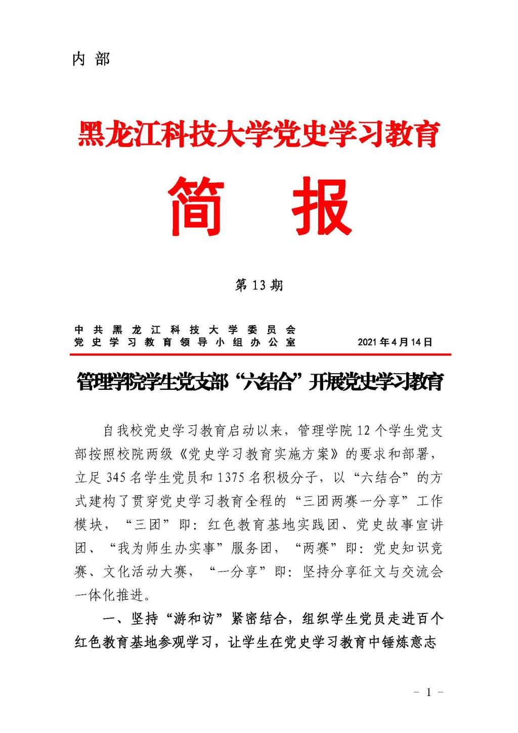 公司员工党支部“六结合”开展党史学习教育被公司党史学习教育工作简报刊载(第13期)
