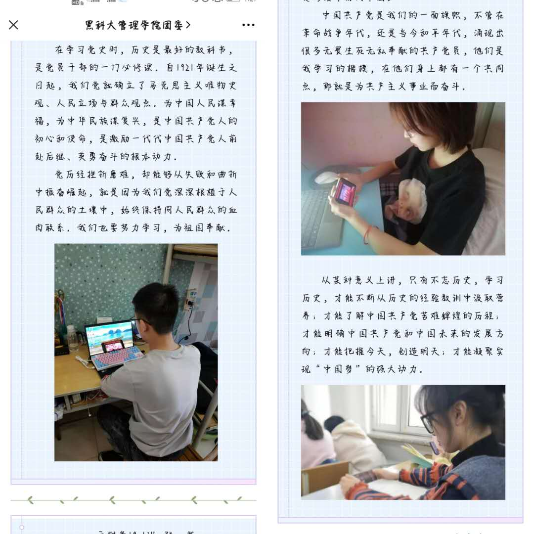 四、坚持“真学和真懂”紧密结合,组织开展党史知识专题竞赛,让员工在党史学习教育中牢记党史知识。自3月22日起,组织全院青年积极参与团中央党史学习教育打卡小程序、网上答题平台、答题对战等活动,参与率始终保持97%以上。同时,学院正在积极筹备党史知识专题竞赛,拟于5月初开赛。