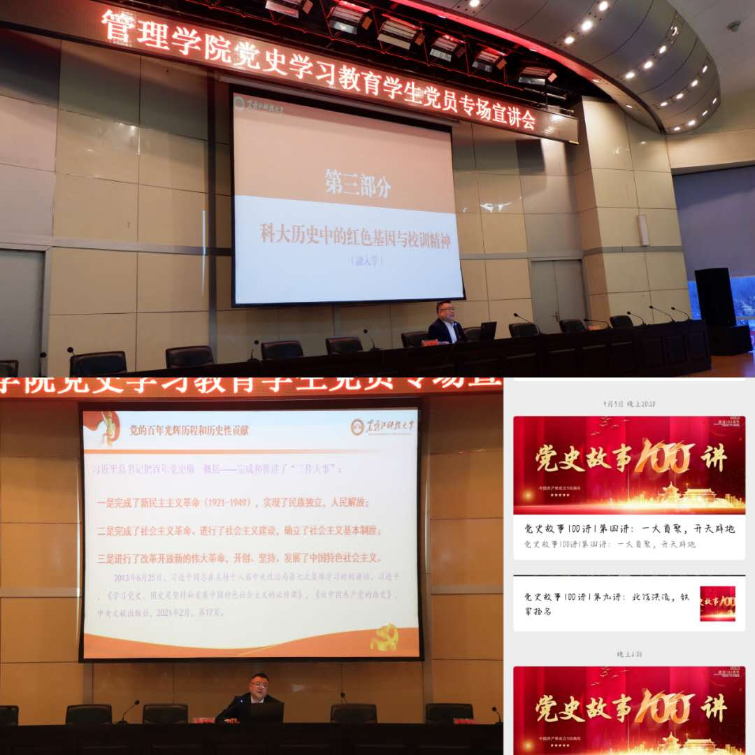 二、坚持“讲和悟”紧密结合,组织开展百个党史故事宣讲,让员工在党史学习教育中坚定理想信念。从4月5日起,采取线上线下相结合的方式,通过微信公众号开展了党史100讲、思政微课党史篇展播活动,分年级、分专业、分支部进行面对面宣讲,形成纵领四个年级横跨六个专业的“新规模”。4月12日,在办公楼报告厅,公司党委书记何景洋为全体员工党员作了题为“学党史知校史,当先锋做表率”专题报告。