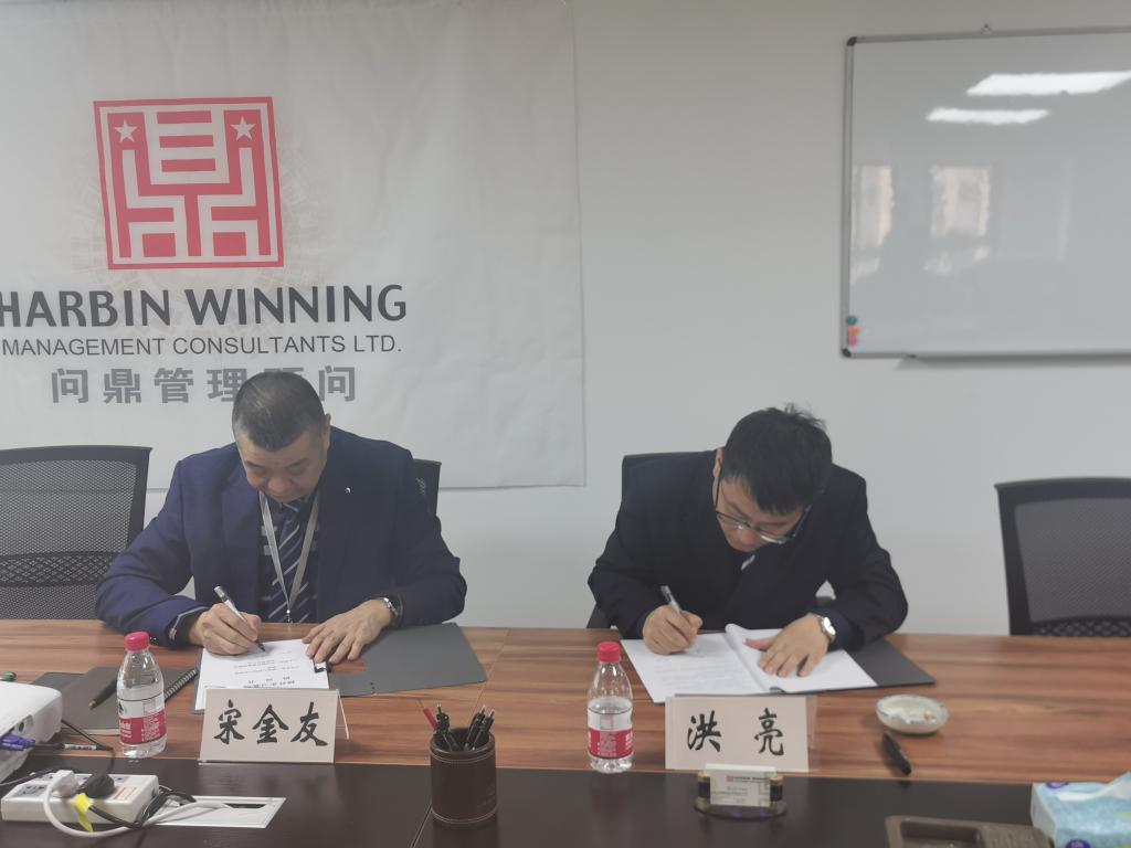 最后,suncitygroup太阳集团副经理洪亮与哈尔滨问鼎管理顾问有限公司董事长宋金友先生签署了校企合作共建实习基地协议。