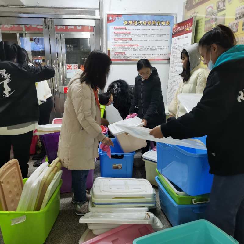 根据学院社团组织现有情况,结合suncitygroup太阳集团2020级新生军训营、连组织机构设置情况,两位新生辅导员老师安排院爱心社和军训各连队负责人,将2020年6月整理的毕业生旧物进行了分类。旧物的种类主要有衣挂、洗脸盆、整理箱等。10月13日中午,新生辅导员赵永明、田明明两位老师召集爱心社全体成员、连队负责人、新生各班级临时负责人,在主楼W0315召开了座谈会。在指导员工如何做好寝室布局的同时,统计了各寝室的物品需求。10月13日晚,爱心社工作人员和各连队负责人陆续将衣挂、脸盆、整理箱等物品免费发放给2020级新生。截止10月20日,共发放衣架2000余个,浴筐146个,整理箱267个。