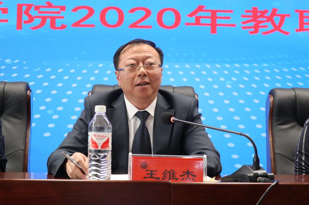 最后,党委书记王维杰作了题为《坚定发展信心、凝聚发展合力在推动学院高质量发展中再立新功》的讲话。对集中精力抓好全年重点工作,他提出几点要求:要实现高质量发展,必须筑牢学院潜心育人的根基。二要实现高质量发展,必须抓住专业核心育才这个关键。三要实现高质量发展,必须依靠全院教师这个主体。四要实现高质量发展,必须强化党的建设这个保证,尤其要注重突出抓好党的思想政治建设继续加强党风廉政建设加强基层党组织建设的基础上持续强化法治、安全和稳定。他强调在公司党委的坚强领导下,精诚团结,咬住目标不放松,破解难题,凝心聚力,砥砺前行,全面开启学院高质量发展新征程,以优异的成绩迎接学校崭新的未来。