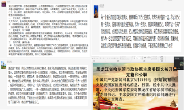 各党支部书记结合“不忘初心牢记使命”主题教育常态化要求,持续推进党风廉政工作深入剖析,以案明纪,提醒全体党员要牢记务实清廉,时刻绷紧反腐倡廉这根弦做到警钟长鸣。随后,全体教师和员工党员围绕主题开展学习讨论,结合自身工作和生活实际,进行自我剖析、自我反省,深入查找自身问题,并将心得体会在微信群中相互交流,大家纷纷表示自己在思想上受到了震撼和教育!
