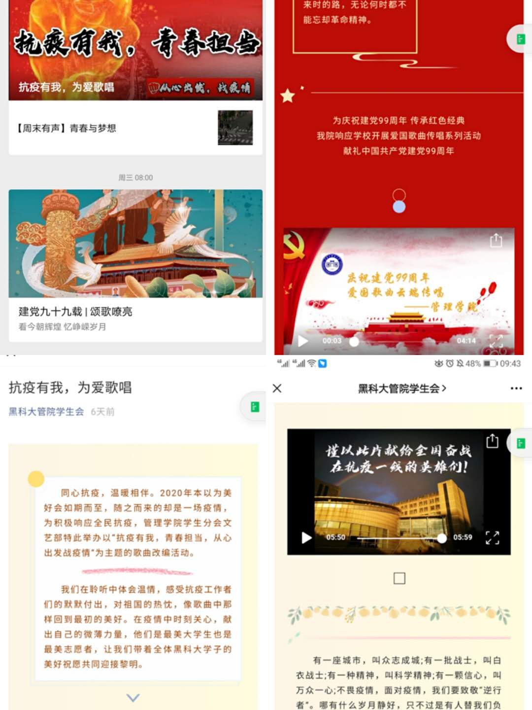 本次“红心向党,抗疫高歌”云端爱国歌曲传唱系列活动通过以歌献礼的形式充分展现了科大学子昂扬向上的精神风貌与独特优良的精神风采,进一步增强了党支部与团支部的凝聚力与战斗力,将师生的爱国热情与向党忠心推向高潮,守住跟党初心并积极投身与党和祖国的伟大建设之中,勇于创新,争当先锋,为打赢疫情防控阻击战贡献自己应有之力!