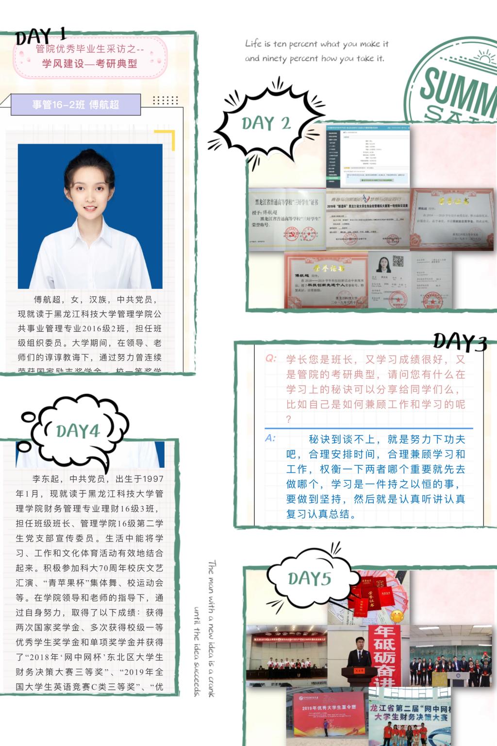 道别离,昔日情谊莫忘怀,望明朝,人生路上踏青云。此次活动将毕业生们的真挚情谊和宝贵经验永久珍藏,激励在校生明确方向、汲取经验,见贤思齐,更好的规划老员工活使得管院精神薪火相传、生生不息。同时也通过此次回忆采访让毕业生们再次回忆大学美好时光感恩母校情,难忘管院恩,用青春的激情、执着的信念、过硬的本领,以梦为马、以汗为泉,不忘初心、不负韶华,志存高远、脚踏实地,在充满希望的明天,书写人生最为华美的诗篇