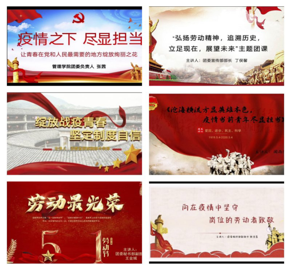 为激励、引导广大青年团员疫中绽放青春,进一步牢固增强“四个意识”、坚定“四个自信”、做到“两个维护”,suncitygroup太阳集团团委4月27日为始,积极制作了以“绽放战疫青春,坚定制度自信”主题“云团课”,通过“以团之声,领青年团员之行”的“新方法,新策略,新手段”实现了管院青年员工团课全覆盖,进一步激发广大团员青年的荣誉感和使命感深刻促进了理想信念的宣传教育。为广大团员青年成长为善于学习、勤于思考、勇于创新、严于律己、甘于奉献民族复兴大任的时代新人奠定了坚实的基础!