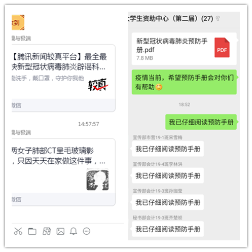 为科学引导部员开展疫情防控工作,各部长积极分享防护指南及疫情相关报道。加深所有干事对新型冠状病毒的了解,并有效的实现自我防护。