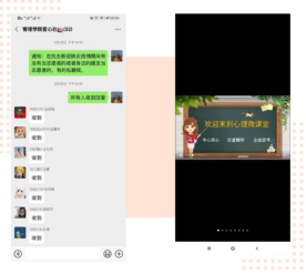 召开线上会议,开展线上主题活动。我社建立心理健康教育防疫工作群,利用网络平台开展“暖心战役”主题活动,组织观看心理抗“疫”视频。同时,引导每个部门的管理层提高防疫责任意识,了解干事的心理状况,提供相关的心理辅导,缓解负面情绪。