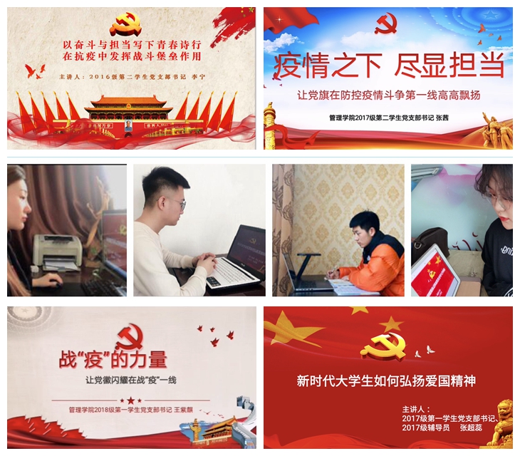 做好基层互动,各年级员工党支部按照“支部书记带动员工党员、党员带动普通同学”的工作思路,创新开展的云上“微党课”,增进了师生交流,党课开展期间师生互动信息达千余条一堂堂“微党课”将“讲故事”与“学理论”相结合,用“小切口”讲“大主题”,文字、图片、视频有机融合,特色鲜明,亮点纷呈提升支部党员教育效果。