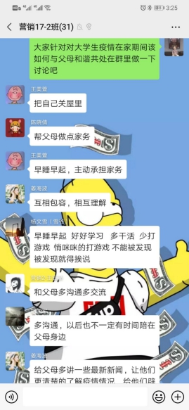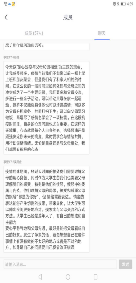 各班利用学习强国、QQ群会议、钉钉会议等各种各样的形式展开心理健康主题班会。同学们积极参与其中,对班会上所提出的各种问题进行了积极地讨论。