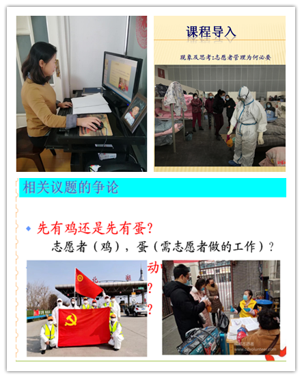 在课程导入部分,她首先邀请员工们一起探讨疫情期间作为志愿者或旁观者所看到的现象、所收获的感动、所觉察的问题、所发现的不足等。员工们非常踊跃:在家的分享了自己在网络看到的故事带给他们的感动;参与志愿服务的员工反馈了人员不足和人员浪费的问题;旁观的员工也看到了不同年龄身份的志愿者处理问题的方式不同,以及对志愿者素质的反思……教师对员工们自己看到的问题进行了梳理总结。