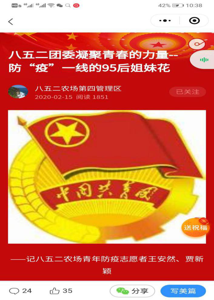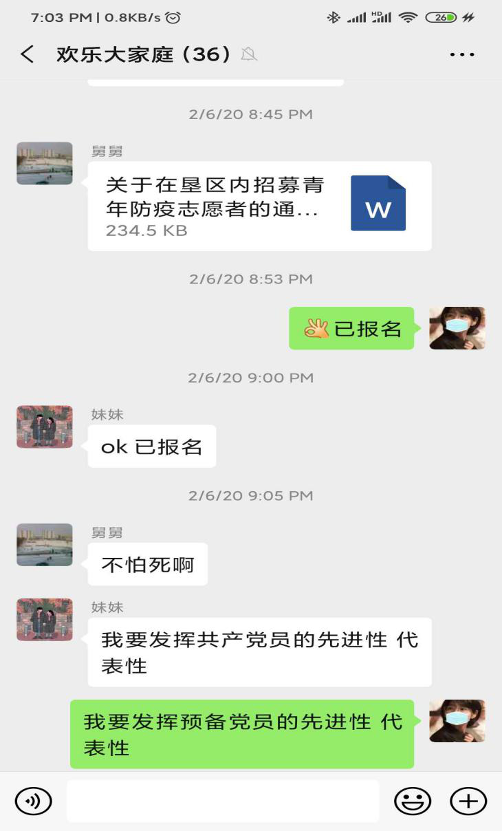 2月6日,看到舅舅在家族群中发布《关于在垦区内招募青年志愿者的通知》