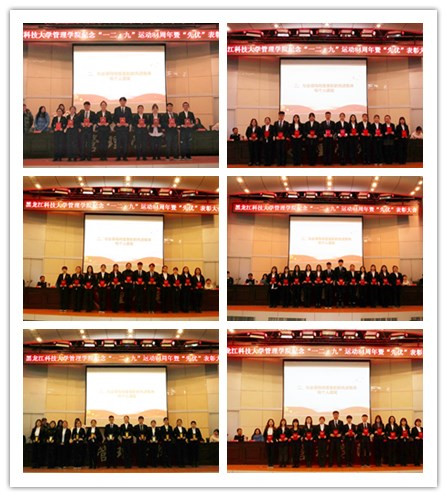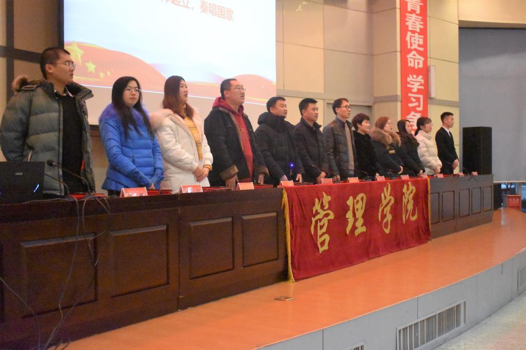 大会在嘹亮的国歌声中拉开帷幕。学工办主任孙亚鹏宣读了《关于表彰2018年度“优秀班集体”、“文明建设先进寝室”、“优秀员工干部”、“学风建设先进个人”、“校园文化建设先进个人”、“优秀牵手负责人”的决定》,与会领导和老师向受表彰的先进集体和个人颁奖。随后,工审16-2班郝召磊、信管17-4班赵书瑜、工管17-2班员兆隆、理财16-3班李东起、工管17-1班王占琪、ACA18-1班杨淳闵六位同学分别代表2019年度优秀班集体、文明建设先进寝室、优秀员工干部、学风建设先进个人、校园文化建设先进个人、优秀牵手负责人做了典型经验交流。