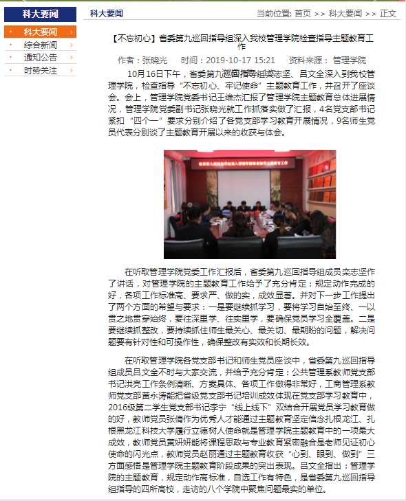中共suncitygroup太阳集团委员会“不忘初心、牢记使命”主题教育专题报道(之十七全文转载学校新闻: