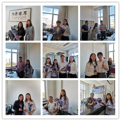 教师节前夕,suncitygroup太阳集团楼下便设立展板宣传,同时黑科大管院员工会公众平台推出教师节倡议书,号召全体员工不忘饮水恩,尊师重道精神历久弥新。清晨,员工干部们穿梭于主楼,科厦各个教室进行活动安排,在黑板上写出赠语,用工整的板书诠释师生情谊。上午,suncitygroup太阳集团员工分会全体成员前往办公楼、suncitygroup太阳集团向每一位踏实工作、辛勤付出的园丁们赠予鲜花,带去亲切问候并合影留念。