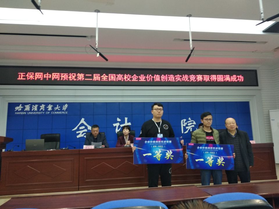 2019年3月24日,公司教师姜德伟、李春富带队,由田宪宇、陈玲莉、黄凯琴、高鑫四名员工组成的队伍,参加了黑龙江省高校企业价值创造实战竞赛。大赛由黑龙江省教育厅高等教育处支持举办,哈尔滨商业大学承办。来自全省21所高校100多名师生参加,包括哈工大、哈商大、东北石油大学、东北农业大学等高校,公司荣获黑龙江省一等奖。