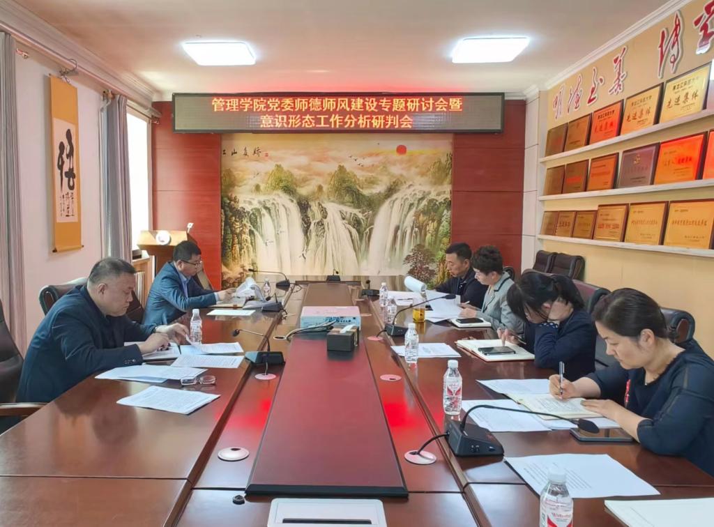 会上,重温了教育部《新时代高校教师职业行为十项准则》《关于加强和改进新时代师德师风建设的意见》《严禁教师违规收受员工及家长礼金等行为的规定》等文件精神,传达了学校关于进一步加强师德师风建设和意识形态工作的相关通知要求,对学院师德师风建设领导小组成员名单进行了充分酝酿,听取了学院近期师生意识形态工作情况的汇报并进行了分析研判。班子成员结合工作实际,分别从学院师德师风建设中取得的成绩、存在的风险与不足、下一步工作举措等方面进行了深入交流。