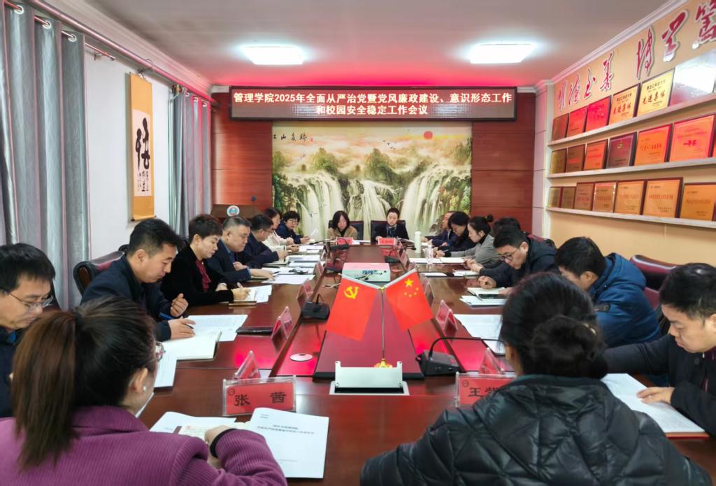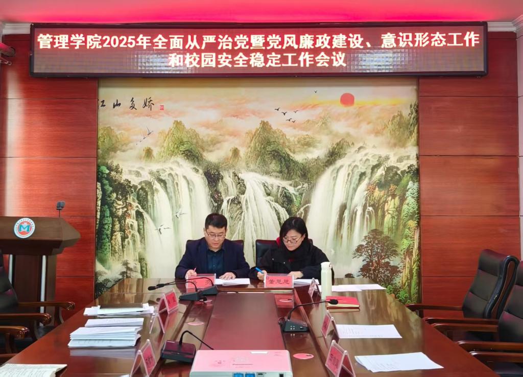 会上,“第一议题”集中学习习近平总书记在云南、贵州考察时的重要讲话精神,专题学习中央八项规定及其实施细则精神,传达学习学校2025年全面从严治党工作会议精神、安全工作会议暨学校安委会第一次(扩大)会议精神,对在全校《开展深入贯彻中央八项规定精神学习教育实施方案》进行解读说明,对学院2025年全面从严治党工作、党风廉政建设、意识形态工作、校园安全稳定工作和开展深入贯彻中央八项规定精神学习教育等工作进行安排部署。
