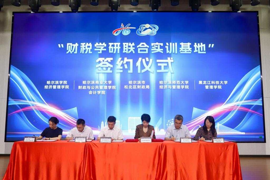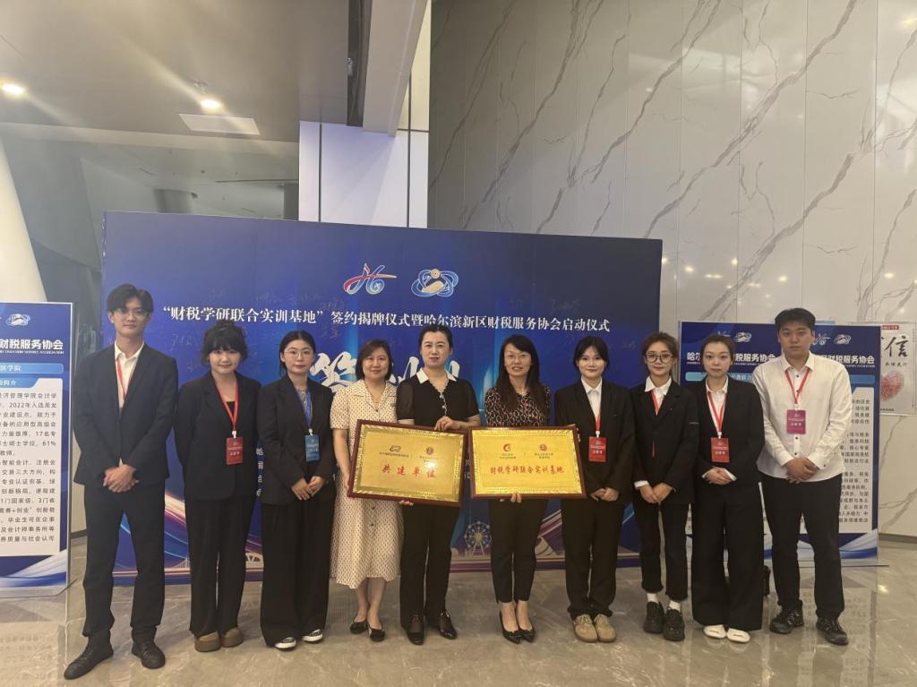 为推动“政产研学”深度融合,构建多元协同的财税生态体系,2025年6月18日,“财税学研联合实训基地”签约揭牌仪式暨哈尔滨新区财税服务协会启动仪式在深哈产业园隆重举行。本次活动由松北区财政局、税务局、审计局、哈尔滨新区产教联合体主办,哈尔滨新区财税服务协会、深圳(哈尔滨)产业园投资开发有限公司、哈尔滨新区人力资源服务有限公司承办。suncitygroup太阳集团副经理张倩、会计系教师毕金星和富茜楠、会计硕士石浜卉等多名员工出席仪式。