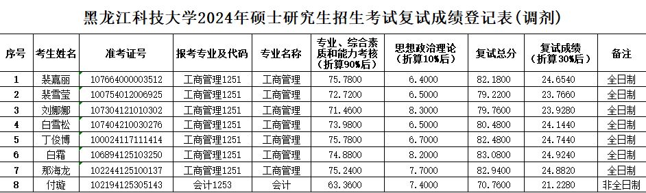 suncitygroup太阳集团2024年硕士研究生招生考试复试成绩登记表(调剂)