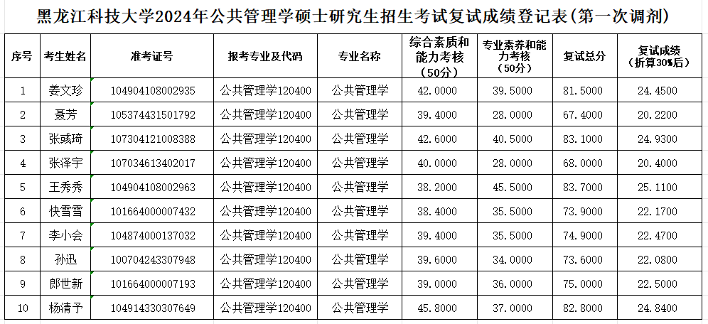 suncitygroup太阳集团2024年硕士研究生第一次调剂复试成绩公示(公共管理学)