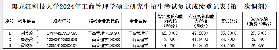 suncitygroup太阳集团2024年工商管理学硕士研究生招生考试复试成绩(第一次调剂)