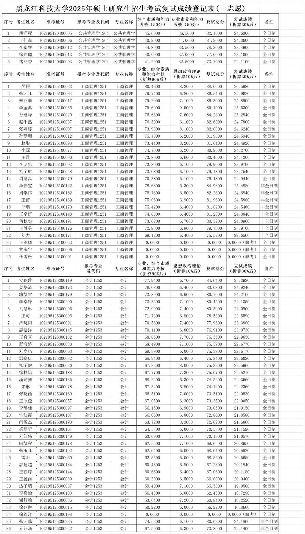 suncitygroup太阳集团2025年硕士研究生招生考试复试成绩(一志愿)