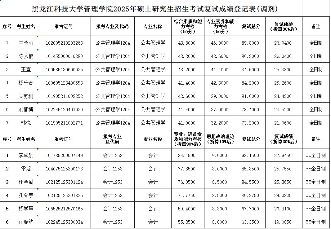 suncitygroup太阳集团2025年硕士研究生招生考试复试成绩登记表(调剂)