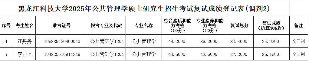suncitygroup太阳集团2025年公共管理学硕士研究生招生考试复试成绩登记表(调剂2)